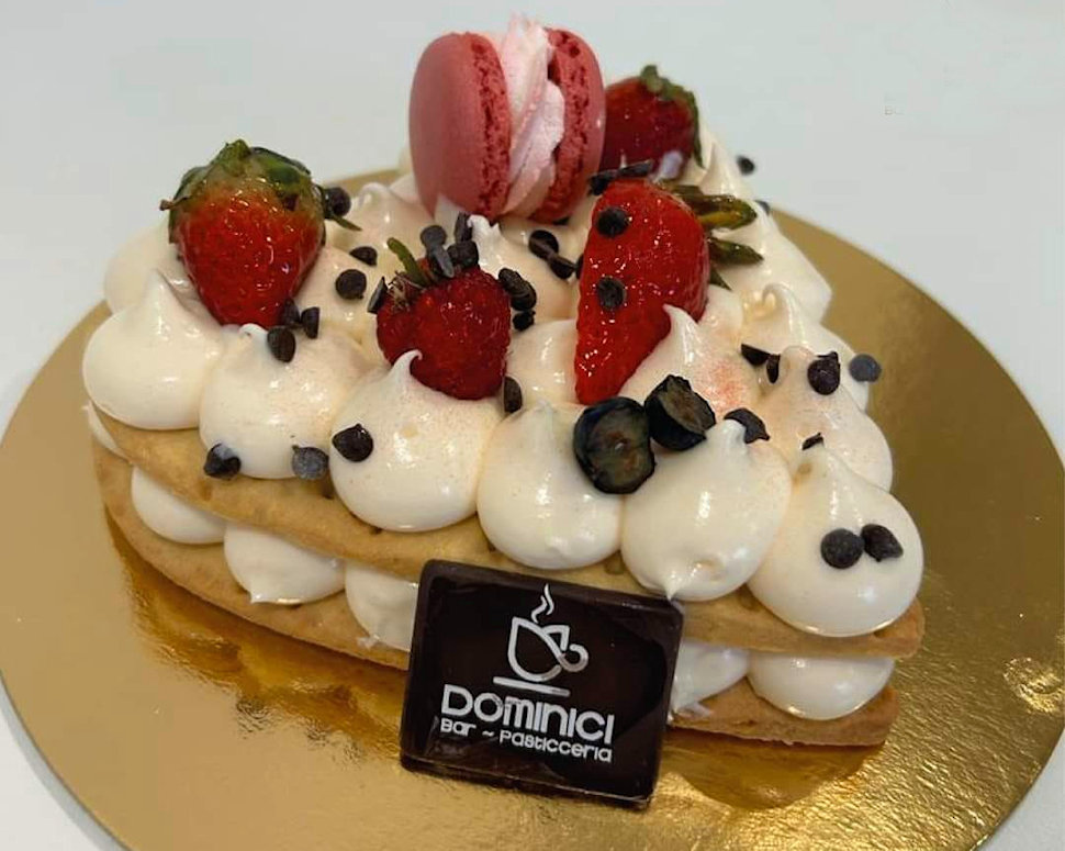 Torte, biscotti, pasticceria mignon, tartellette, crostate, maritozzi, cornetti, dolci tipici, delizie assortite di tutti i tipi e soprattutto semifreddi. Ricco di varianti che alternano gli ingredienti più diversi, il semifreddo prodotto da Dominici è un dolce al cucchiaio che non ha stagioni. Ed è una vera rivelazione. “Realizziamo semifreddi variegati con diversi gusti, anche con quelli esotici. Uniamo la sfiziosità di un dolce alla freschezza di un gelato. E sono quelli più richiesti, vanno praticamente a ruba”. All’amarena, al caffè, al cioccolato e mandarino, caramello salato e arachidi, cocco e frutti di bosco… e chi più ne ha più ne metta”.