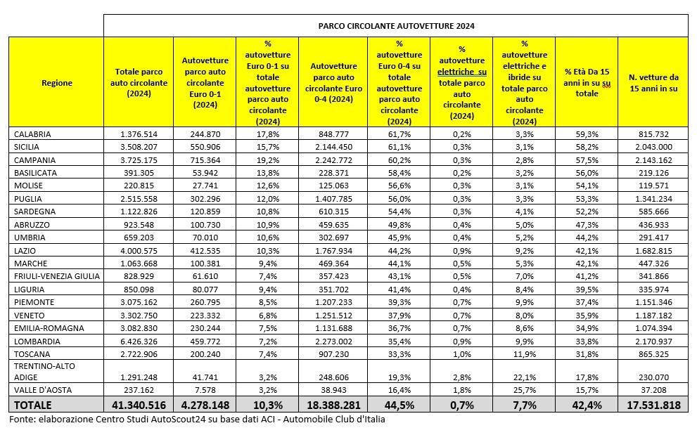Qual è la fotografia a livello regionale del parco auto circolante?