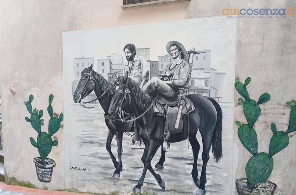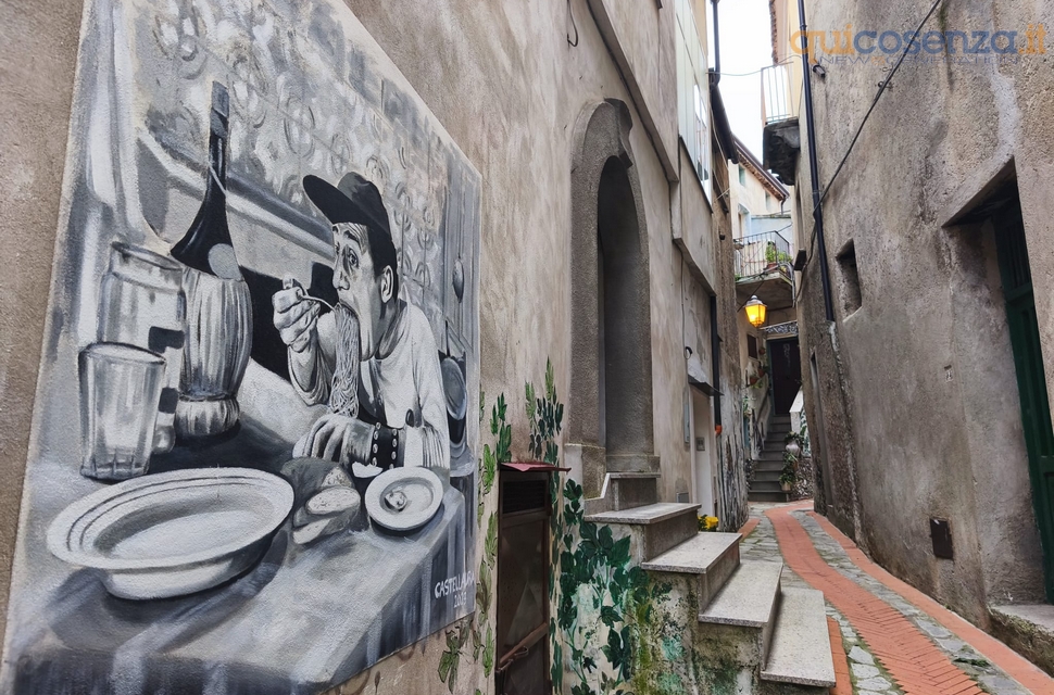 Camminando tra i vicoli di Sant’Agata di Esaro, ogni angolo regala una sorpresa, ma uno dei percorsi più suggestivi è senza dubbio quello di Castellaura, dove l’arte incontra la storia del cinema. Qui, tra le antiche mura del borgo, prende vita un progetto unico nel suo genere, ideato e portato avanti da un giovane artista sant’agatese che ha voluto trasformare le pareti del centro storico in una galleria a cielo aperto.