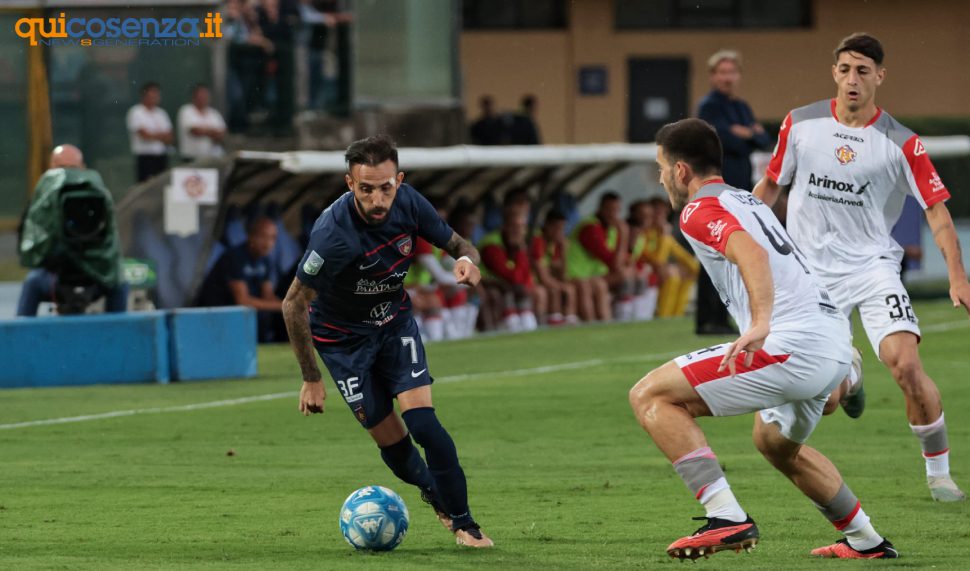 Un goal che ha spezzato l’equilibrio di una gara bella e avvincente, che dopo un primo tempo chiuso sullo zero a zero (con i rossoblu che hanno nel palo colpito da Tutino la migliore occasione), nella ripresa si sblocca con il vantaggio della Cremonese al miuto 61′ firmato da Collocolo e con il pareggio immediato dei rossoblu siglato di Mazzocchi con un perentorio colpo di testa due minuti dopo. Dopo il goal del vantaggio fallito da Tutino e la solita girandola di cambi (si é rivisto in campo anche Florenzi), al 79′ come detto la Cremonese trova il goal partita con il colpo di testa di Coda che regala i tre punti ai grigiorossi e punisce un Cosenza sprecone e un pizzico sfortunato.