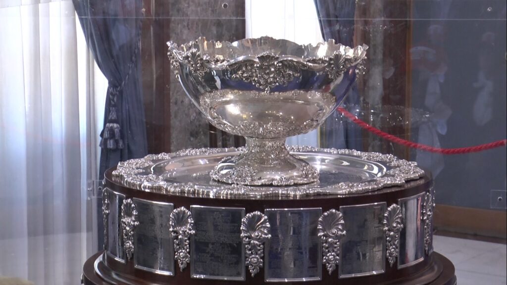 COSENZA – E’ arrivata nella serata di ieri perché la Coppa Davis, oltre un metro di altezza e 200 kg di peso, arriva a pezzi e deve essere montata. Non è un corpo unico, ma tre parti ne compongono la base su cui sono incisi i nomi delle squadre e dei tennisti vincitori dal 1900. E poi sopra la famosa insalatiera d’argento.