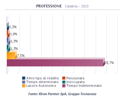 Dall’analisi della professione del mutuatario emerge che la sicurezza economica è tra gli elementi fondamentali richiesti dagli istituti di credito per erogare un finanziamento. Tale caratteristica identifica l’89,6% del campione (dipendenti a tempo indeterminato e pensionati), a fronte del 7,5% di chi ha un contratto di lavoro flessibile (liberi professionisti/lavoratori autonomi e titolari d’azienda) e dell’1,3% di lavoratori a tempo determinato.