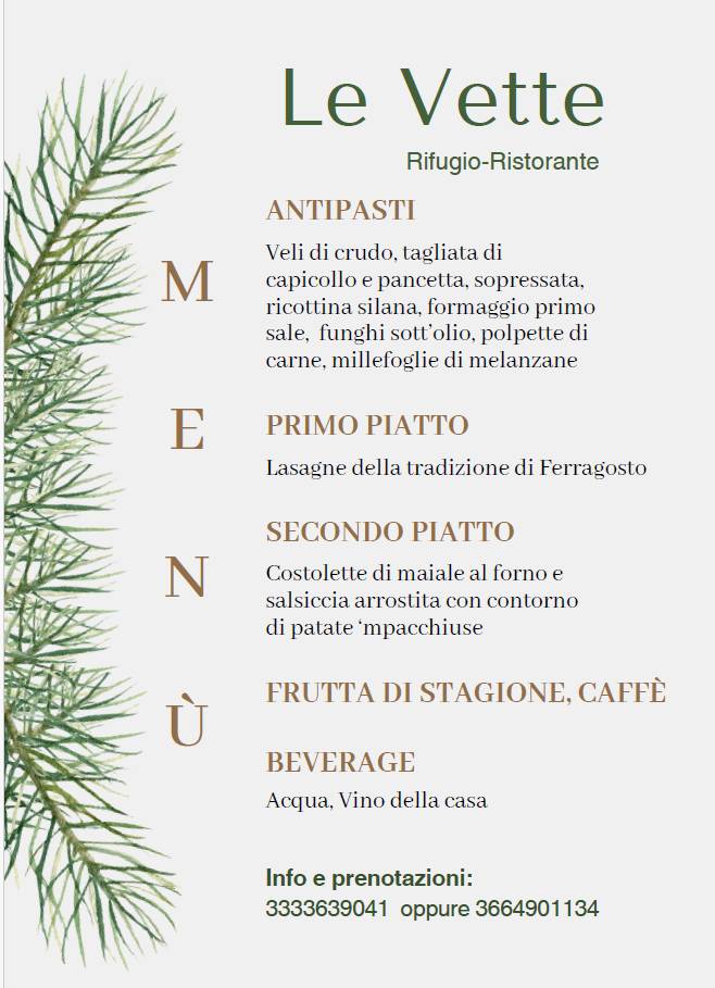 E se l’inverno è suggestivo per la presenza della neve, l’estate diventa un’occasione per sfuggire alle temperature roventi e godersi momenti di relax e benessere nella natura. Agosto poi, è il mese perfetto per vivere la bellezza del posto. Il Rifugio Ristorante “Le Vette” ha così pensato di offrire a turisti, escursionisti, bikers, ma anche a chi vuole allontanarsi dalla città o semplicemente desidera assaporare la bellezza del posto, tante opportunità.