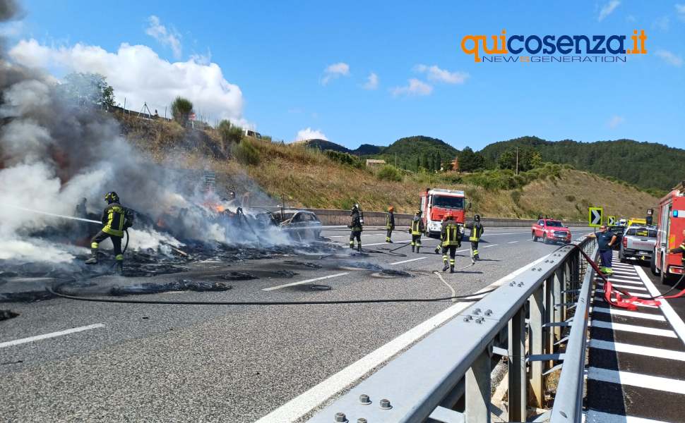 Incidente sull’A2 nel Cosentino, mezzi in fiamme dopo lo scontro. Due feriti e traffico bloccato