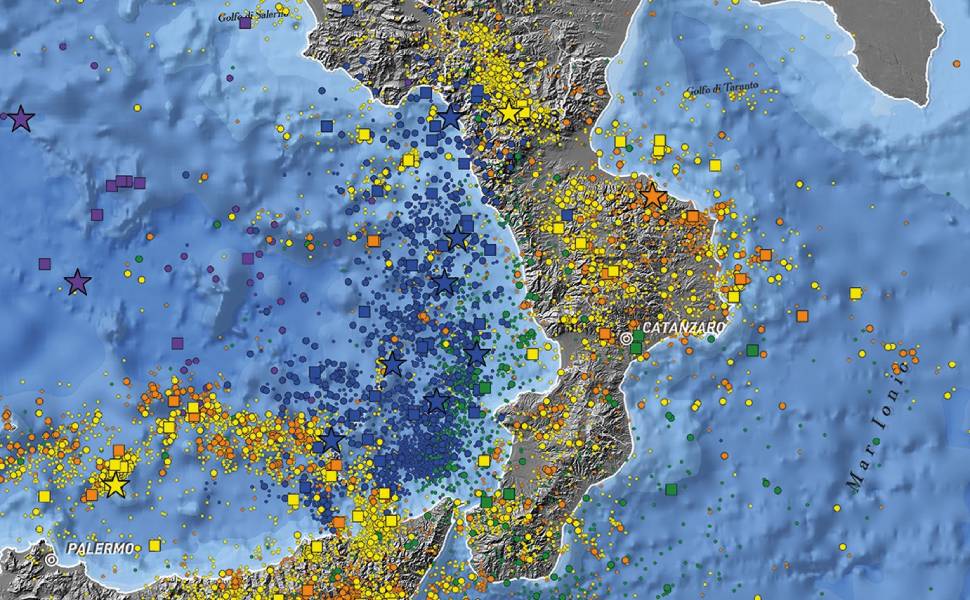 Si osserva una sismicità piuttosto significativa e diffusa in molti settori della regione sia lungo la costa tirrenica sia lungo quella ionica e nelle aree interne del crotonese, del catanzarese, del cosentino e del reggino. È inoltre evidente un’elevata sismicità nelle aree vulcaniche siciliane e campane, in particolare nell’area etnea e, negli ultimi anni, in quella dei Campi Flegrei con terremoti di magnitudo anche superiore a 4.0.