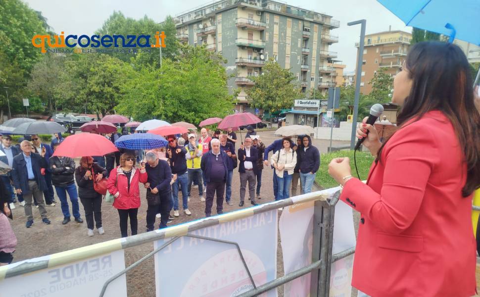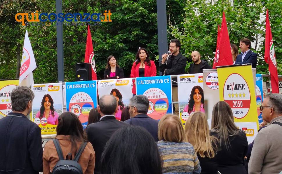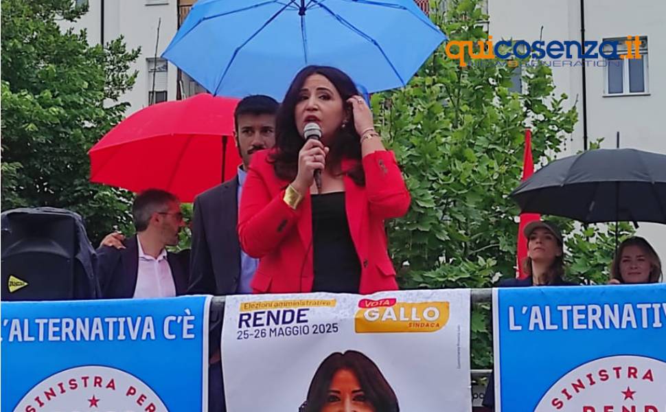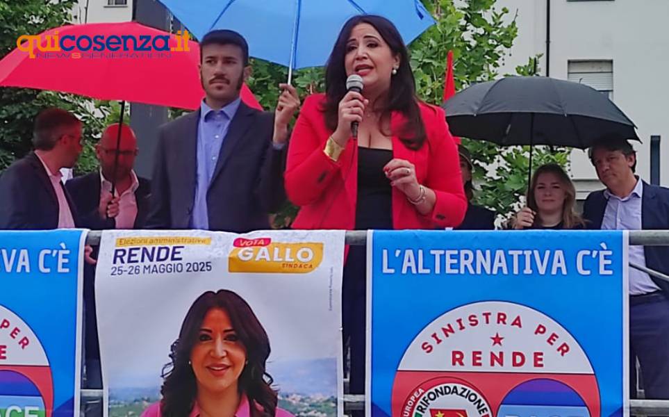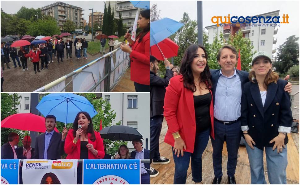 RENDE (CS) – La pioggia di inizio giornata non ha fermato l’agenda elettorale di Rossella Gallo, candidata a sindaco del Movimento 5 Stelle e Sinistra, in campo per le Amministrative di Rende. Questa mattina, nonostante il meteo non proprio favorevole, Gallo – unica donna in corsa per la poltrona di primo cittadino – ha regolarmente presentato il programma e le liste a suo sostegno in piazza Unità d’Italia, alla presenza – fra gli altri – della deputata M5S Vittoria Baldino e dell’europarlamentare M5S Pasquale Tridico, oltre che di attivisti e simpatizzanti.