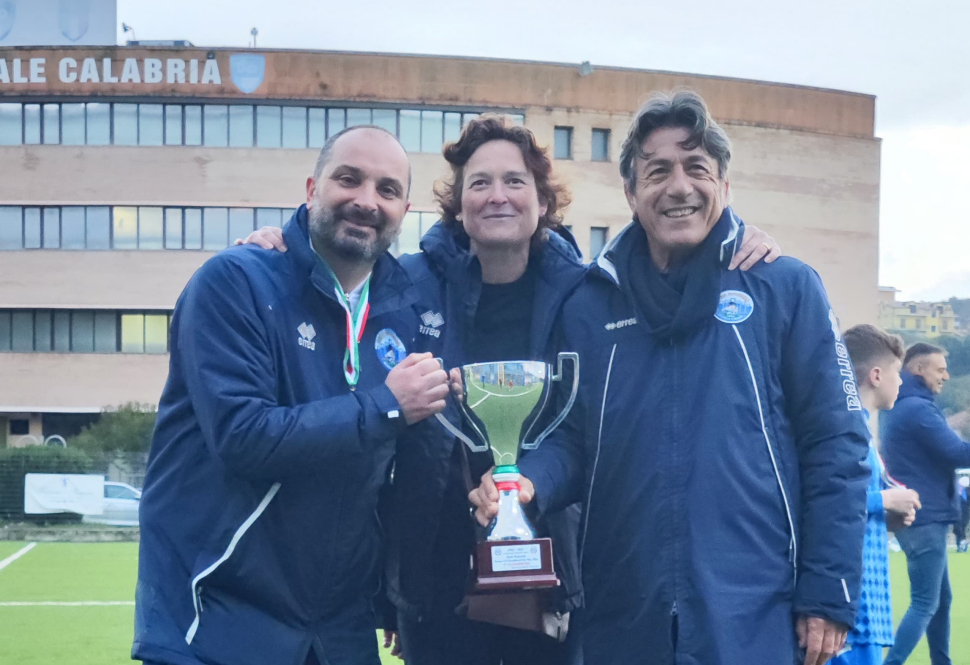 Questa vittoria per i 2012 del Real Cosenza non è solo un successo sportivo, ma anche un riconoscimento dei valori che la scuola calcio trasmette ai ragazzi. E il presidente Pierpaolo Perri di questo è orgoglioso. Accanto al mister Marrello festeggia il suo prezioso collaboratore Cozza e i dirigenti De Rose e Pugliese. Il capitano Luigi Pugliese alza la coppa e il sogno continua.