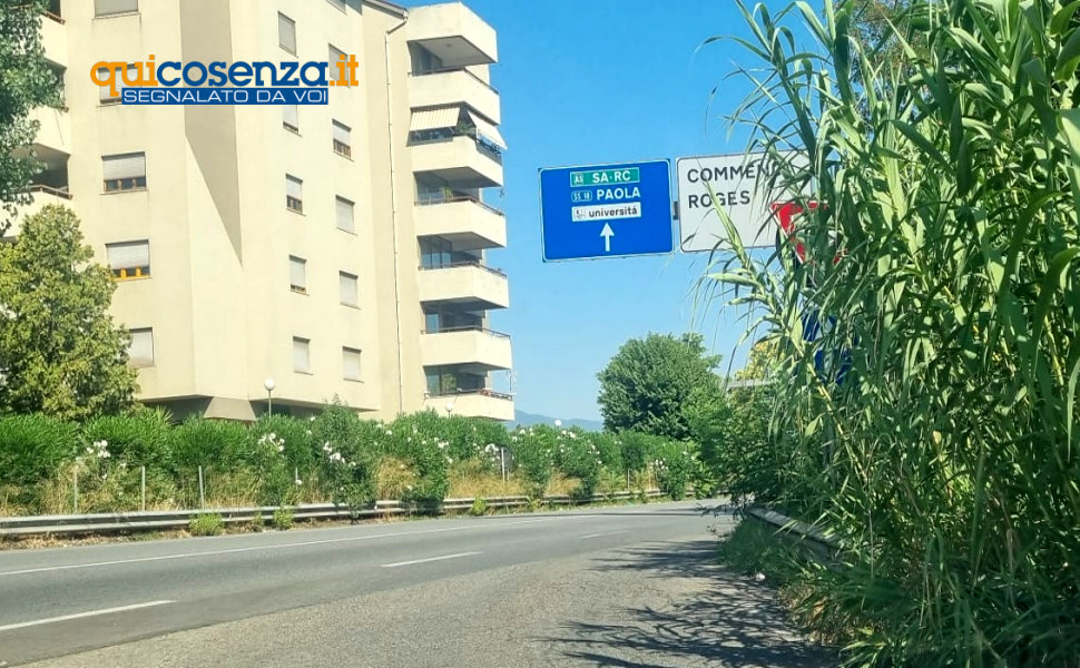 “Buongiorno voglio segnalare la situazione di incuria in cui versa lo svincolo di Commenda-Roges sulla Statale 107 “Silana-Crotonese” a Rende. Le rampe di accesso e uscita del suddetto svincolo, a poche centinaia di metri dalla rotonda dello Stadio Lorenzon, sono letteralmente invase non solo da sporcizia, ma soprattutto da una fitta vegetazione. In particolare dalle canne (Arundo donax) cresciute a dismisura. I lunghi e curvi fusti hanno oramai invaso buona parte della carreggiata. Questo crea una situazione di grande pericolo quando ci si deve immettere sulla Statale. Soprattutto la notte, infatti, le canne ostruiscono completamente la visuale non permettendo di vedere le auto che sopraggiungono. Chiedo, a chi di competenza, deduco sia competenza di Anas, di intervenire al più presto per ripristinare le normali condizioni di viabilità e sicurezza”.