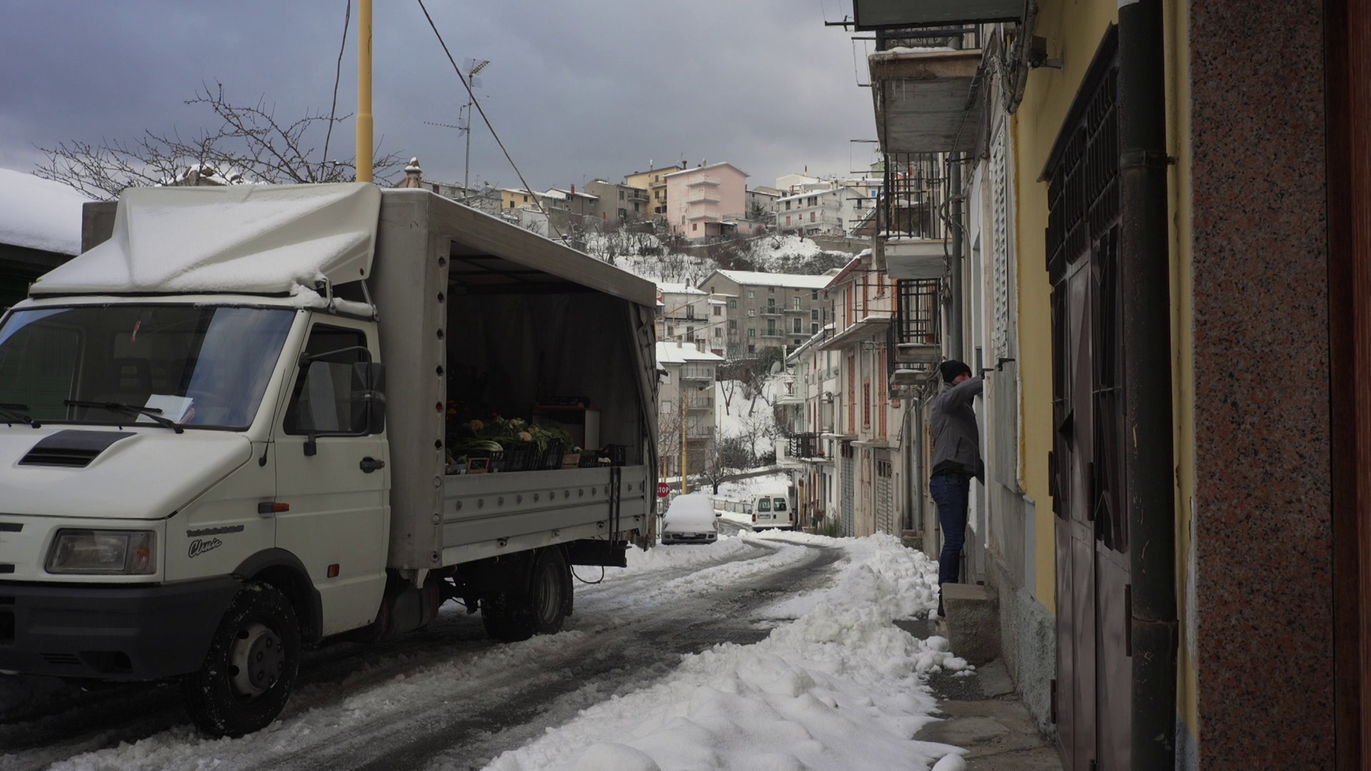 BOCCHIGLIERO (CS) – Ogni giorno Giorgio, con il suo camion di frutta e verdura fresca, fa avanti e indietro per i rioni di Bocchigliero, paesino in provincia di Cosenza, nel cuore della Sila Greca. Qui l’uomo, di origine bulgare, si è reinventato insieme alla sua famiglia, creando un’orto-frutta ambulante, mettendosi a disposizione dei suoi compaesani. Basta un cenno con la mano dal balcone o una telefonata per farsi portare a casa i prodotti di stagione. La maggior parte della frutta e della verdura che commercializza è prodotta da lui, coltivata negli orti abbandonati e nei terreni offerti dagli amici nel completo rispetto della natura.