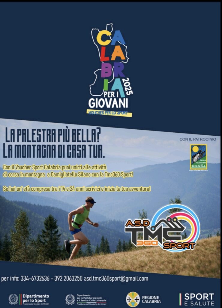 CAMIGLIATELLO SILANO (CS) – L’Asd TMC 360 Sport che organizza Sila3Vette Winter Challenge,settore educational è tra i beneficiari del Voucher Sportivo Calabria per i Giovani, un’iniziativa promossa dalla Regione Calabria in collaborazione con Sport e Salute.