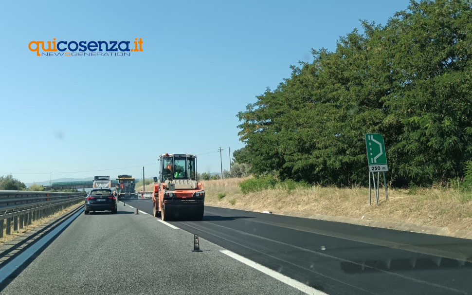 Lavori di rifacimento al manto stradale: lunghe code sulla A2 tra gli svincoli di Montalto e Rende