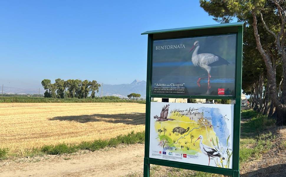 Per sancire questo rapporto di collaborazione la Lipu ha donato alcuni pannelli didattici e relative bacheche dove si evidenziano gli aspetti naturalistici e l’elevata biodiversità presente nelle aree interessate dal progetto. Sono le risaie, in questa porzione nord della Calabria, l’elemento attrattivo, l’habitat trofico ideale per la Cicogna bianca ed il Cavaliere d’Italia, in grado di attirare le tantissime altre specie legate agli ambienti umidi, un vero e proprio paradiso per gli amanti del birdwatching.