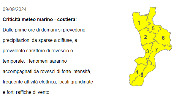 Maltempo, domani allerta gialla in Calabria: previsti temporali e forti raffiche di vento