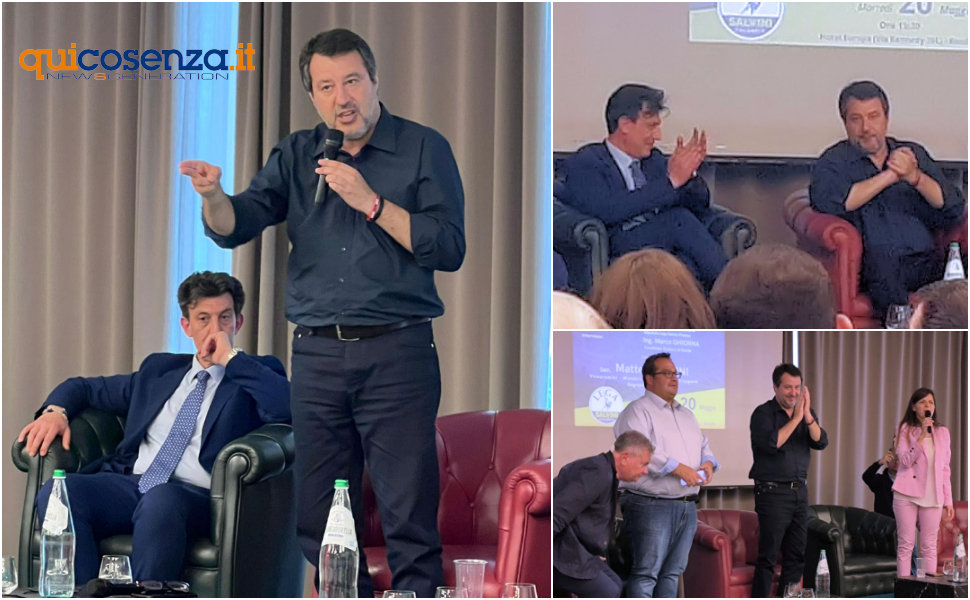 Nel pomeriggio, come detto, è arrivato a Rende per sostenere il candidato a sindaco Marco Ghionna che a Salvini ha illustrato il suo programma elettorale. Presenti all’evento anche il sottosegretario Claudio Durigon, il vicepresidente del consiglio regionale Filippo Macuso. Ed ancora Katia Gentile, consigliere regionale e commissario provinciale della Lega a Cosenza con la suo fianco la deputata cosentina della Lega Simona Loizzo. In prima fila diversi esponenti e big della politica cosentina del centrodestra: tra tutti Pino Gentile.