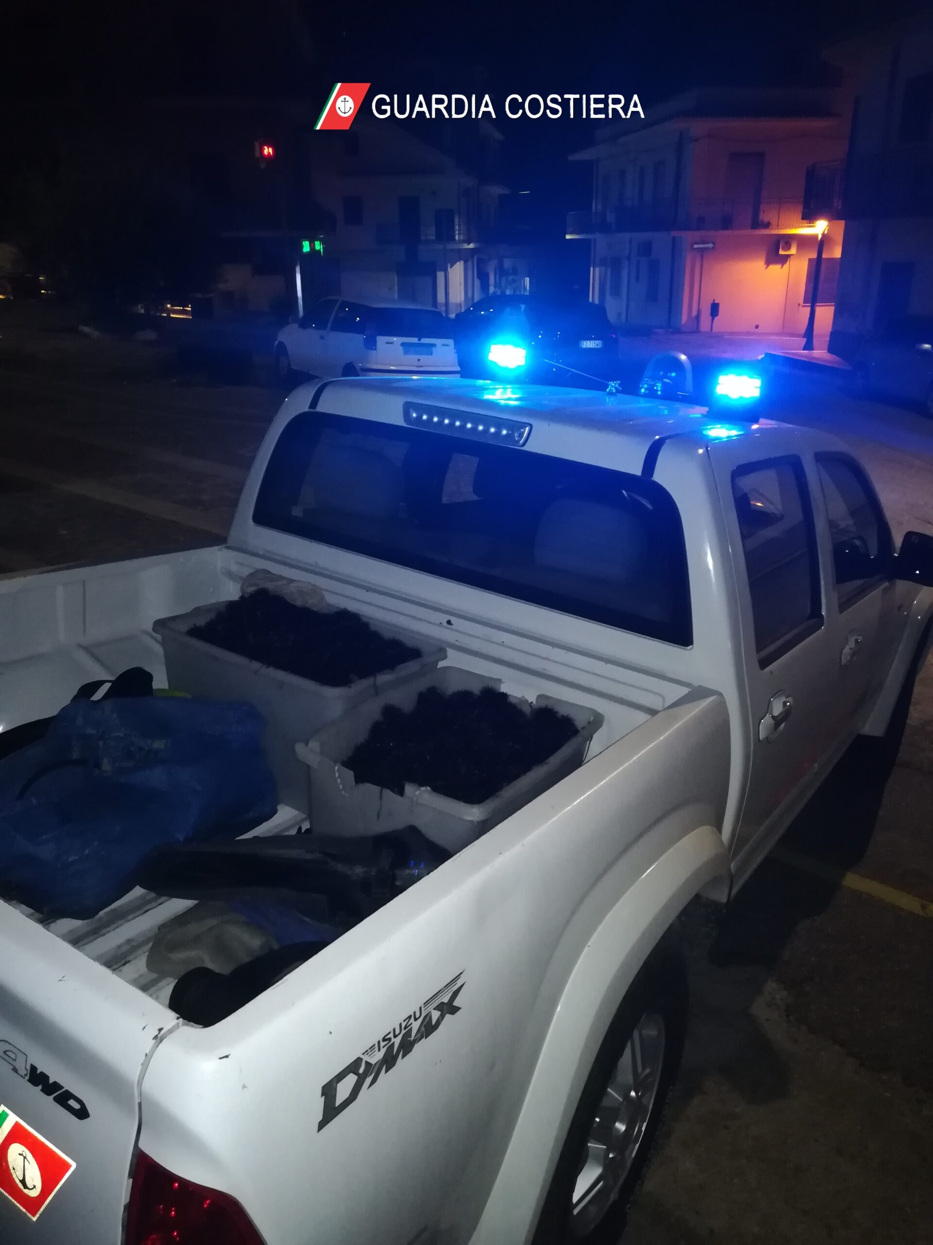 Intensa anche l’attività di pattugliamento eseguita dalla Guardia costiera in mare lungo i 120 km di costa di competenza. Durante le numerose missioni di vigilanza pesca eseguite da unità navali del Corpo sono stati posti sotto sequestro attrezzi da pesca non regolamentari, tra cui circa 2 chilometri di reti da posta illegali e 60 trappole per polpi illecitamente calate in mare. In due distinte attività di vigilanza e appostamento sono stati, inoltre, colti in flagrante e sanzionati due pescatori di frodo intenti alla pesca subacquea con ausilio di apparecchi autorespiratori. A ciascun responsabile delle violazioni è stata elevata una pesante sanzione amministrativa pecuniaria di € 1.000, mentre la costosa attrezzatura utilizzata, tra cui bombole con erogatori e fucili subacquei, veniva sottoposta a sequestro, in attesa della prevista confisca.