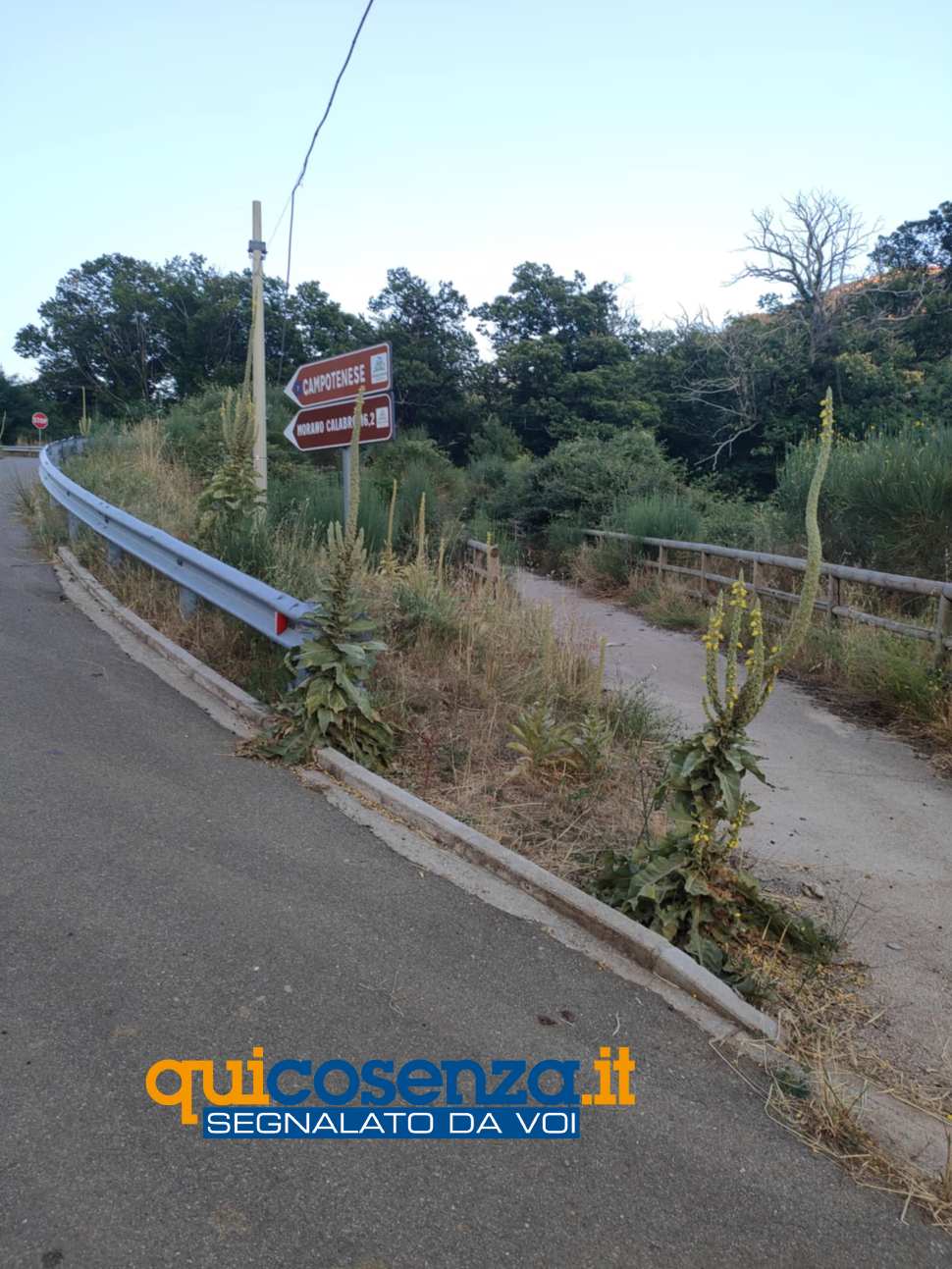 MORMANNO (CS) – Erbacce alte lungo tutto il percorso che crescono rigogliose ed incontrastate per via del caldo e della bella stagione, così tanto da spuntare lungo tutto il sentiero, oltre la ghiaia, ed invadere il percorso rendendo difficile la camminata. Le palizzate laterali praticamente ingoiate dal verde e “resti” di lavori non ancora ultimati come reti di cantiere e recinzioni di metallo.