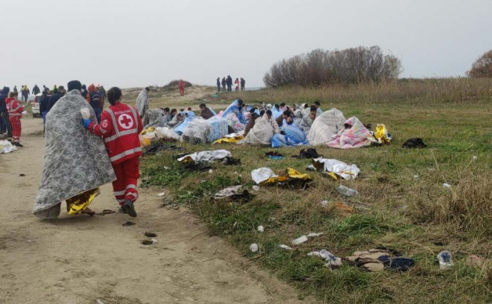 CUTRO (KR) – La distesa di teli bianchi da una parte, dall’altra i sopravvissuti avvolti dalle coperte e i teli termici. Un bilancio destinato a salire perchè molte persone sarebbero disperse, una quarantina. I cadaveri sono 59, 21 donne e 26 uomini e tanti i bambini, 14, tra cui due gemellini di pochi anni ed un piccolo di pochi mesi. Intere famiglie spazzate via dalle onde. I sopravvissuti sono 82 e per 22 di questi è stato necessario il trasporto in ospedale. Una persona è in prognosi riservata ed è ricoverata in terapia intensiva. I corpi, dopo la benedizione impartita dal vescovo di Crotone mons. Raffaele Angelo Panzetta, sono stati caricati su carri mortuari e portati nel palasport di Crotone.