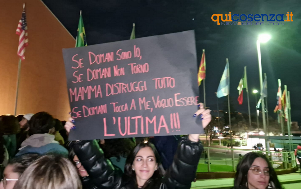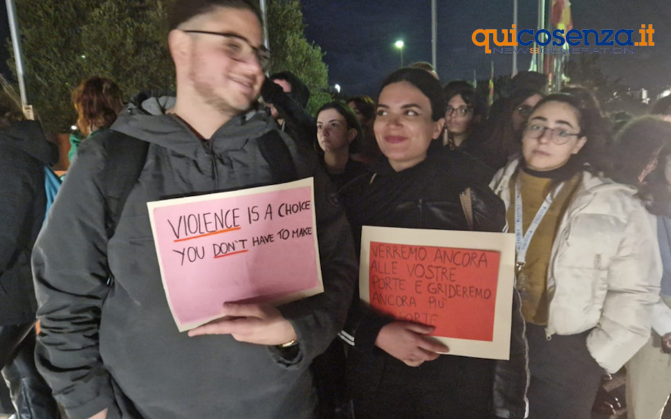 RENDE – Dare ‘fuoco al silenzio‘ e lanciare un messaggio collettivo, a più voci, affinchè si possa prevenire qualsiasi forma di violenza. Si sono dati appuntamento questo pomeriggio all’Università della Calabria, sotto le bandiere dell’ingresso del ponte Bucci, decine di studenti e di rappresentanti di numerose associazioni del territorio e movimenti studenteschi. Una mobilitazione partecipata, silenziosa ma con l’urlo di rabbia dentro ognuno, per richiamare l’attenzione su quella che è la necessità di una rivoluzione culturale, nel ricordo di Giulia Cecchettin, l’ennesima vittima di femminicidio in Italia. Un sit in per chiedere con forza un risveglio collettivo e istituzionale che segni la fine della società patriarcale, di modelli caratterizzati da stereotipi e forme di violenza, che sia essa psicologica, fisica, economica.