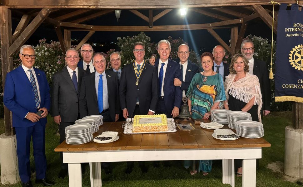 COSENZA – Scambio delle consegne al Rotary Club Cosenza Telesio. Ieri, lunedì 14 luglio, si è svolta la cerimonia nella cornice della Tenuta del Mantelli durante la quale è stato eletto il nuovo presidente. Si tratta di Giorgio Meo, dirigente medico dell’Azienda Sanitaria Provinciale di Cosenza, che guiderà il Club nell’anno rotariano 2025-2026.