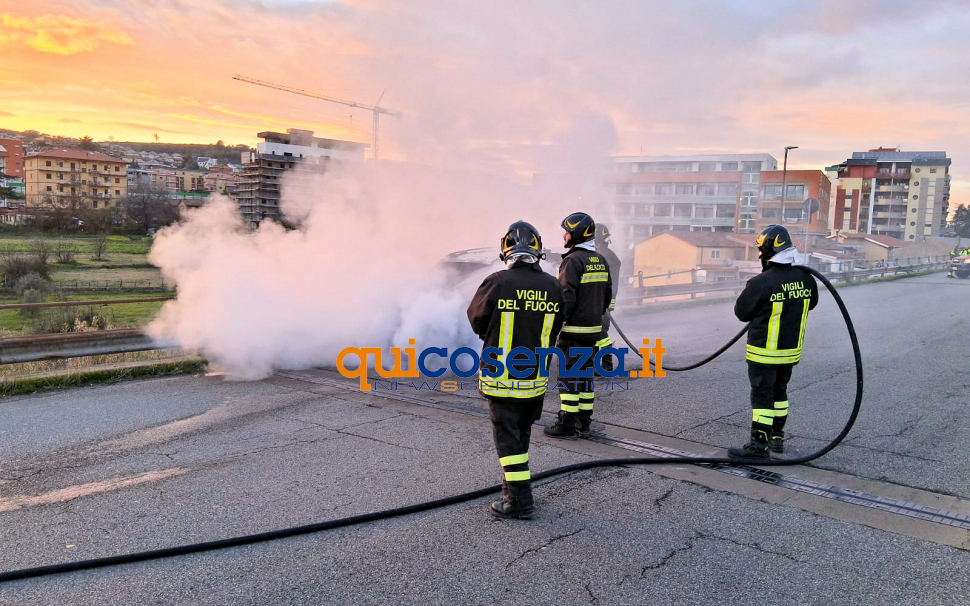 Sul posto sono intervenuti i vigili del fuoco del Comando Provinciale di Cosenza, che hanno prontamente spento le fiamme, partite dal cofano e che hanno quasi distrutto la parte anteriore del mezzo. Presenti anche i carabinieri di Rende che si stanno occupando di effettuare tutti i rilievi. Il tratto di strada è rimasto chiuso fino al termine delle operazioni di spegnimento e poi riaperto al traffico anche se vengono segnalate ancora delle code.