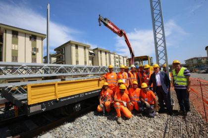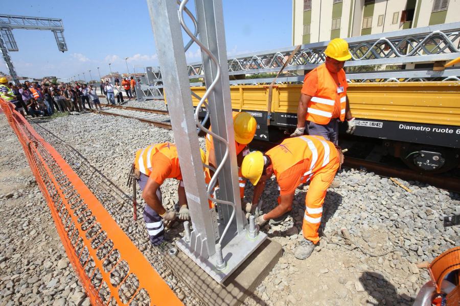 CORIGLIANO ROSSANO (CS) – Con la posa dei primi pali (tralicci) posti sulla tratta ferroviaria Sibari e Catanzaro Lido questa mattina, Il Presidente della Regione Calabria Mario Oliverio, l’Assessore alle Infrastrutture Roberto Musmanno, e l’Amministratore Delegato e Direttore Generale di Rfi (Rete Ferroviaria Italiana) Maurizio Gentile hanno dato il via, presso la stazione ferroviaria di Corigliano Scalo, alla presenza di numerosi cittadini, parlamentari, dei due Presidenti delle Province di Crotone e Cosenza, di consiglieri regionali, provinciali e comunali, autorità militari, civili e  religiose, ai lavori per l’elettrificazione della nuova ferrovia jonica.