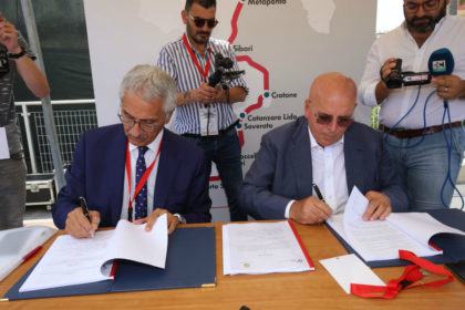 Nel corso della stessa mattinata di oggi Regione ed Rfi hanno firmato anche l’Accordo Quadro, un documento valido dieci anni (rinnovabile dopo i primi cinque) che consentirà di programmare la capacità di traffico sulle linee ferroviarie della Calabria, potenziare la rete e i servizi, realizzare una progressiva omogeneizzazione dei trasporti, sia in termini di fermate sia di velocità commerciale, garantendo un sistema di integrazione tra diverse modalità di trasporto nelle principali stazioni della Calabria. Per la Regione si tratta di uno strumento tecnico con cui prenotare capacità di traffico per la rete ferroviaria regionale e programmare nel medio/lungo periodo l’utilizzo dell’infrastruttura ferroviaria, in funzione del Piano Regionale dei Trasporti. Per RFI invece l’Accordo Quadro serve a determinare le reali esigenze di mobilità del territorio, intervenendo e programmando, dove necessario, piani di upgrade infrastrutturale per ottimizzare lo sviluppo dei servizi regionali, con benefici sulla regolarità e puntualità del servizio.