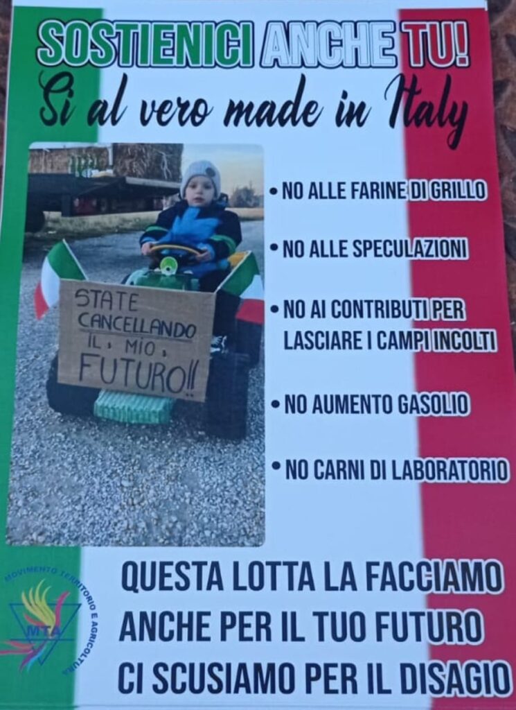 “No alle farine di grillo, No alle speculazione, No ai contributi per i campi incolti, No all’aumento di gasolio, No carni di laboratori”: sono diversi i motivi che spingono i manifestanti contro le politiche che l’Unione Europea impone ormai da troppo tempo.