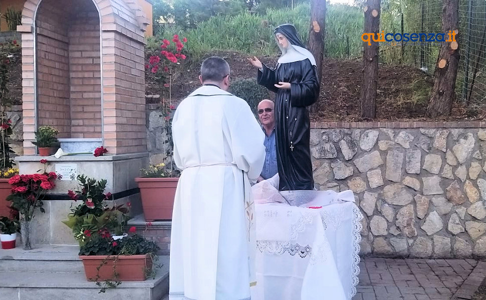 RENDE – Alla presenza di Santi Gioffrè, uno dei tre commissari che guidano il Comune di Rende, del parroco Don Pompeo Rizzo della parrocchia della Santissima Trinità e di diversi cittadini, è stata posizionata, ieri pomeriggio, una statua che raffigura Santa Rita nella piazzetta che si trova in località Surdo. L’evento proprio in concomitanza del la memoria liturgica di Santa Rita, considerata la “santa degli impossibili” perché si ricorre alla sua intercessione nei casi che sembrano disperati. E la figura di questa donna straordinaria è collegata al dono di una rosa.