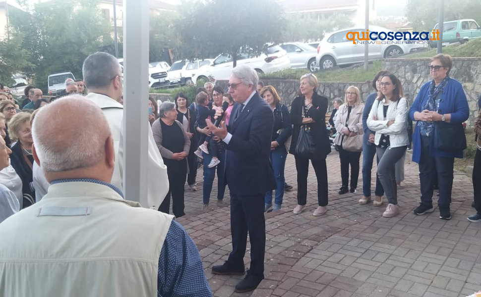 La statua è stata fortemente voluta dai residenti, grazie alla devozione della signora Lucia Lo Canto e della partecipazione di tutti i residenti di Surdo. Dopo la benedizione e una momento di preghiera con i fedeli, il Commissario Gioffrè ha parlato di un bel momento di aggregazione ed ha ringraziato tutti i cittadini che hanno permesso l’installazione.
