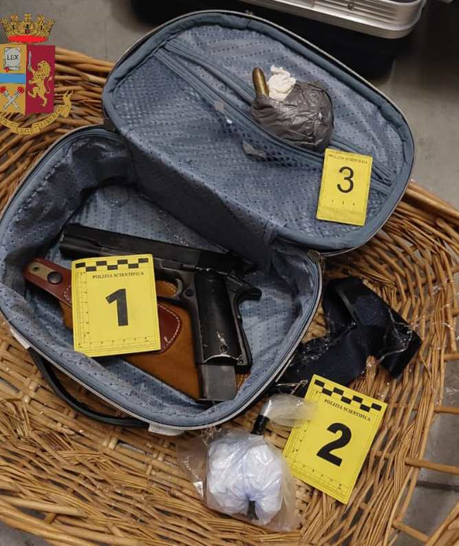 Nell’ambito dei servizi, una persona, allo stato irreperibile, è stata denunciata dalla Squadra Mobile poiché, all’interno di alcuni locali nella sua esclusiva disponibilità, sono stati trovati 100 grammi di cocaina, strumenti per la pesatura della droga ed una pistola Colt calibro 45 clandestina con relativo munizionamento.