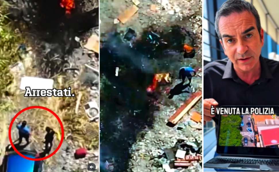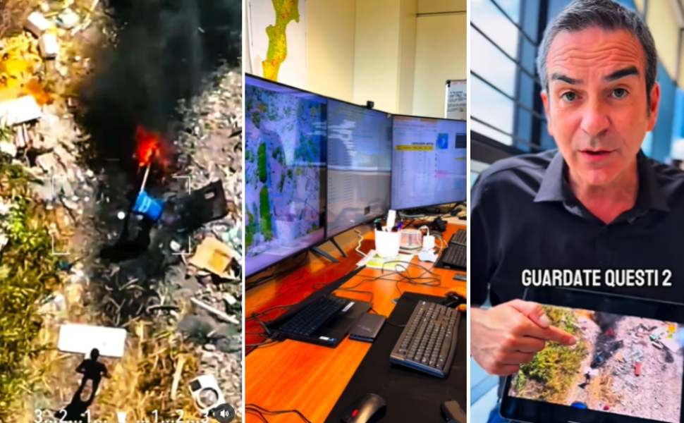 Ripresi dai droni mentre appiccano un incendio di rifiuti. Occhiuto: «grazie al lavoro dei dipendenti regionali»
