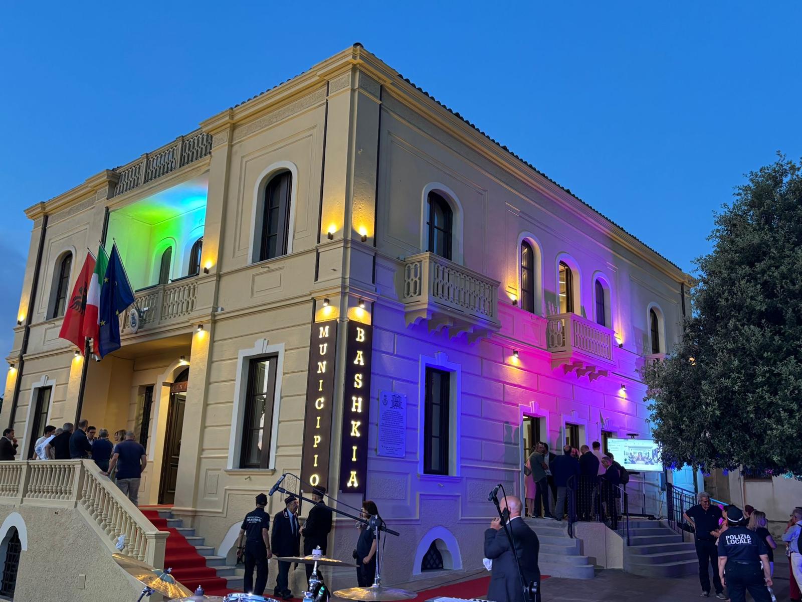 SAN DEMETRIO CORONE (CS) – San Demetrio Corone ha una nuova Casa comunale: Villa Marchianò, in piazza, nel centro del paese. È stato il Presidente della Repubblica di Albania, S.E. Bajram Begaj a tagliare il nastro all’ingresso della nuova Casa comunale di San Demetrio Corone. Accanto al Presidente, il sindaco Ernesto Madeo, il Vescovo dell’Eparchia di Lungro, S.E.R. Mons. Donato Oliverio, insieme ai rappresentanti delle istituzioni civili, religiose e militari del territorio e la Federiciana Università Popolare retta dal Prof. Salvatore Maria Mattia Giraldi -, con il Cav. Pasquale Giardino, nella duplice veste di Direttore del Dipartimento “Cerimoniale, Onorificenze ed Araldica” della Federiciana e di Responsabile del Cerimoniale con “delega alla Solidarietà” dell’ANCRI – Associazione Nazionale Insigniti Ordine al Merito della Repubblica Italiana – sez. Cosenza.