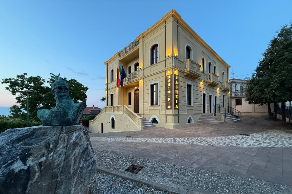 Aprire la Casa comunale in piazza, nel centro del paese, significa collocarla nel cuore della vita collettiva. Questa sede nasce da un progetto partecipato, sviluppato con impegno da progettisti, tecnici, lavoratori. Si è trattato di un importante intervento di restauro su un edificio storico dei primi del Novecento, che da oggi in avanti svolgerà una doppia funzione. La prima è prettamente amministrativa: tutti gli uffici comunali sono riuniti in un unico spazio, organizzati in modo efficiente, senza dispersioni e pienamente accessibili ai cittadini. La seconda è culturale: Villa Marchianò sarà anche un luogo dedicato alla memoria collettiva, uno spazio che accoglie e racconta la storia della comunità. Come uno scrigno, Villa Marchianò da oggi racchiude l’arte, la tradizione e la storia di San Demetrio Corone.