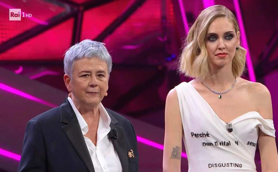 COSENZA – Scendono dalla scalinate del teatro Ariston sulle note della canzone di Loredana Bertè, Sei bellissima. Un messaggio che va a tutte le donne, ognuna speciale, unica, fragile. Chiara Ferragni, dopo lo scialle con su scritto “Pensati libera”, indossa un abito con alcune frasi sessiste che lei stessa ha ricevuto “ma sei una mamma escort?”, “disgusting”, “Perchè non ti rifai il seno?”. Dal palco di Sanremo dunque, si levano le voci delle donne che aiutano altre donne. Assieme all’influencer infatti, sul palco ci sono tre attiviste, tra cui Antonella Veltri, cosentina, presidente della Rete Nazionale Antiviolenza D.i.Re. che si occupa di sostenere e difendere le donne vittime di violenza da parte degli uomini.