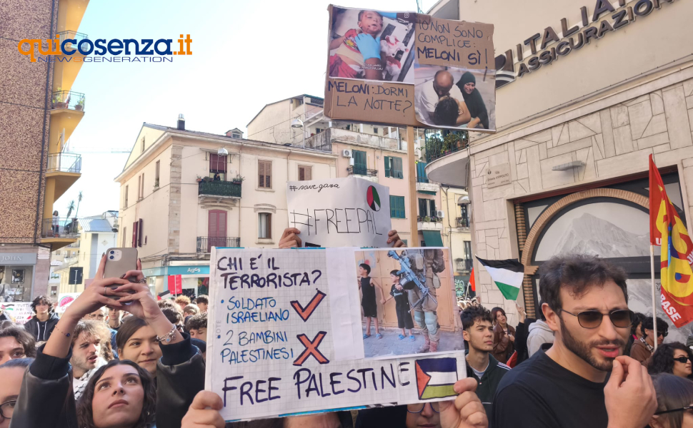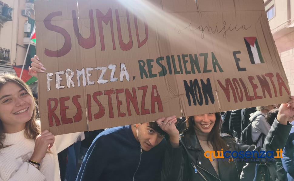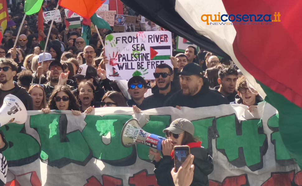 Eugenio de Fazio, rappresentante del comitato ‘Cosenza e Unical per la Palestina‘, spiega che questa mobilitazione rappresenta una «risposta compatta ad un genocidio in corso contro il popolo palestinese, accentuato dagli eventi delle ultime 24 ore». Gli attivisti protestano contro il governo Meloni, sostenendo che «il governo non può salvare il popolo, ma che è solo il popolo stesso a poterlo fare». La manifestazione ha l’obiettivo di “bloccare” le ingiustizie e punta ad unire le forze per una causa comune. «Studenti universitari ma anche tantissimi delle scuole superiori: siamo tutti qui per cercare di “bloccare” il genocidio del popolo palestinese. Anche e soprattutto in virtù di ciò che è successo nelle ultime 24 ore, ovvero il blocco della Global Sumud Flotilla».