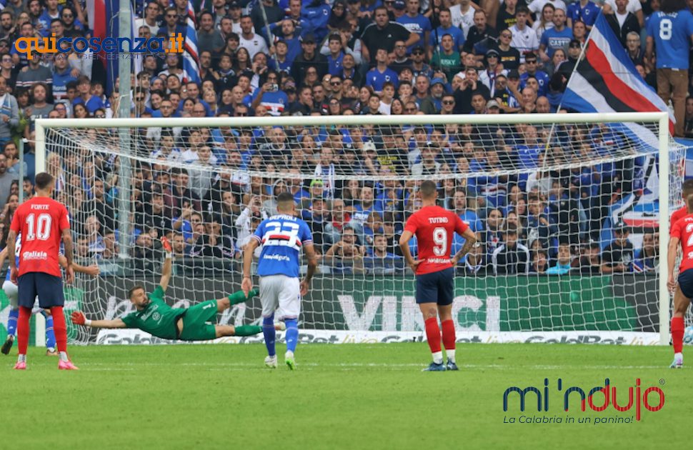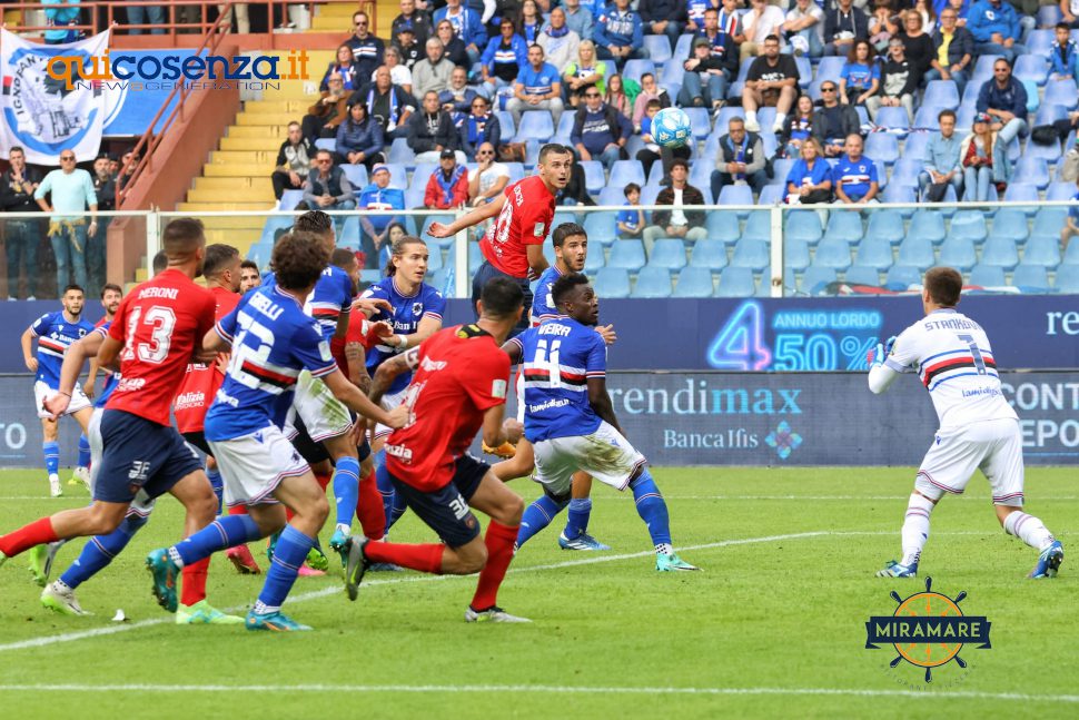La Samp sfrutta l’impeto del momento e al 60′ trova l’occasione per sbloccare la gara con il calcio di rigore trasformato da Borini e fischiato per un ingenuo fallo in area di Marras su Esposito. Samp avanti e Cosenza costretto a inseguire. Al 64′ Tutino si fionda su un cross dalla destra ma il suo colpo di testa scheggia la traversa. Una vera e propria maledizione per l’attaccante napoletano che colpisce l’ennesimo legno della sua stagione.