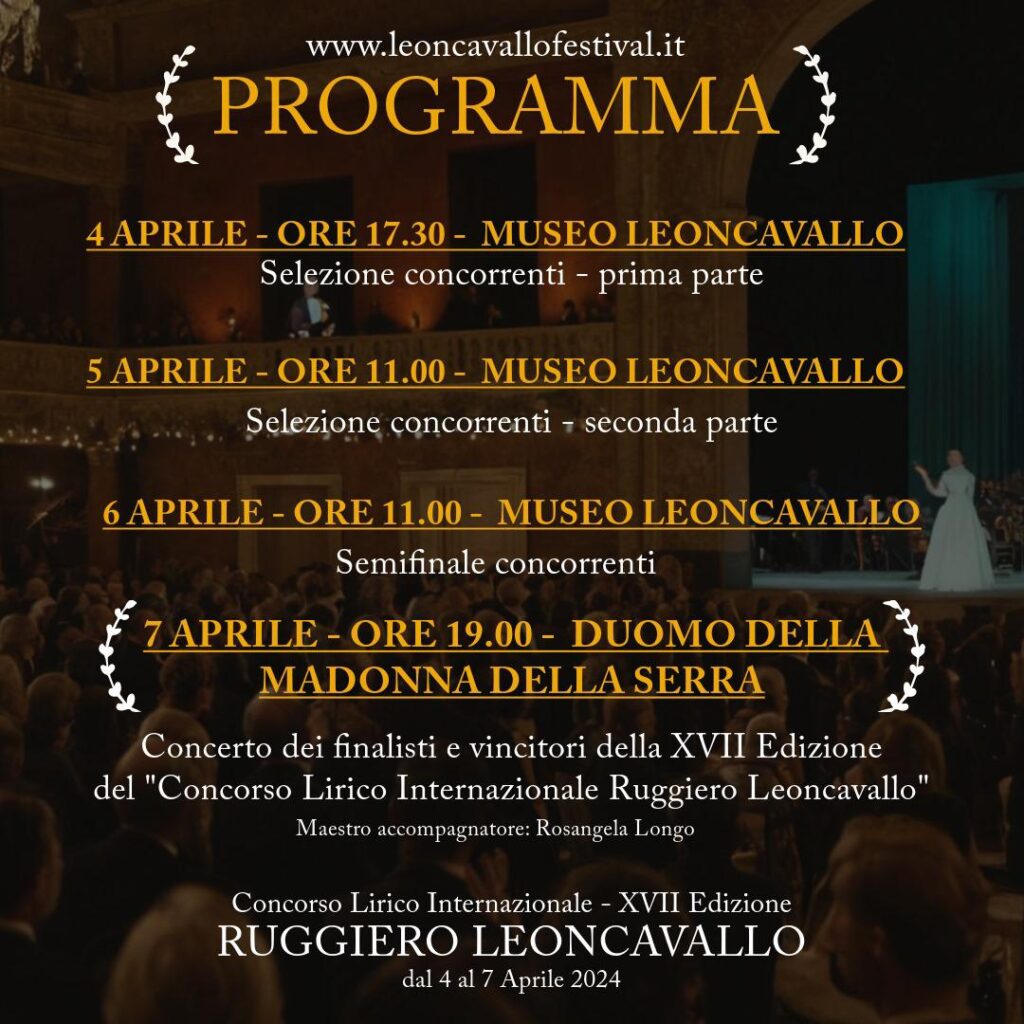 MONTALTO UFFUGO – Con il concerto Lirico, nel Duomo di Santa Maria della Serra, questa sera alle 19:00, si conclude la XVII edizione del “Concorso Lirico Internazionale Ruggiero Leoncavallo”. Un evento organizzato dall’ assessorato alla Cultura del Comune di Montalto Uffugo, che anche quest’anno ha richiamato numerosi concorrenti, selezionati da una apposita giuria.