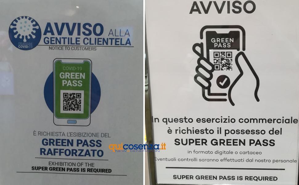 Alcuni esercenti a Cosenza e Rende stanno richiedendo il super green pass per l'accesso ai negozi ma sarà obbligatorio dal prossimo 15 febbraio