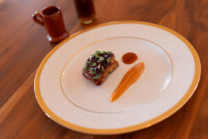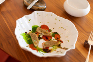 - Trota della Sila: piatto a cui lo chef è affezionato perché è un pesce che sin da piccolo trovava sempre la domenica sulla tavola, fatto dalla mamma o dalla nonna, e va a valorizzare il territorio della Sila fuori dal suo habitat naturale;