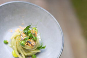 - Spaghettone: piatto costruito sull’idea del non sprecare e sulle materie prime dell’orto: nella ricetta troviamo fave e piselli, con le cui bucce è realizzato un estratto per cuocere lo spaghettone;
