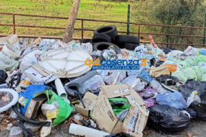 RENDE (CS) – La strada e il parcheggio delle auto, trasformati in una vera e propria discarica a cielo aperto. Buste accatastate con rifiuti di ogni genere, ma anche ferro, plastica, pezzi di lavatrice, vetri, sanitari e persino copertoni. Una situazione insostenibile che va avanti da svariati mesi, segnalata alla nostra redazione da diversi studenti e che di certo non fa onore al prestigio dell’Università della Calabria. Siamo a due passi dai dipartimenti di Fisica e Matematica. Parliamo del quartiere “Martensoon A” dell’Unical, ubicato di fronte alla Biblioteca “Tarantelli”, che ospita diversi alloggi per studenti e una mensa.