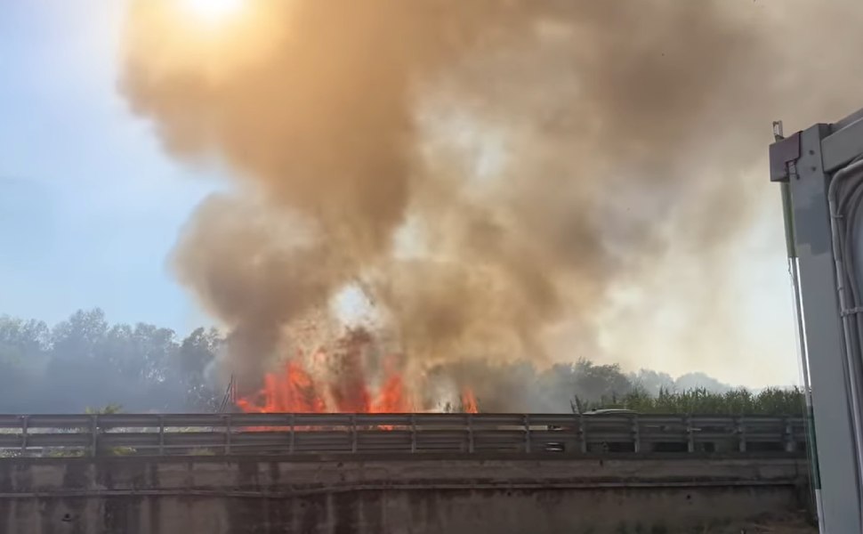 Sui social i cittadini e chi abita nella zona, parla di situazione spaventosa ed è tanta la paura che le fiamme possano arrivare, visto l’avvicinarsi alla stazione ferroviaria, anche alla zona prospicente la Statale 107.