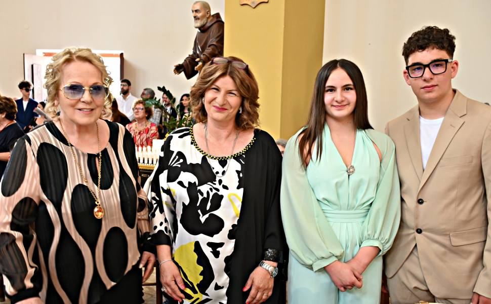 L’artista, che ha con il giovane Marco un forte legame affettivo e professionale – da lei stessa definito “figlio artistico” – ha accettato con entusiasmo il ruolo di madrina anche per la sorella gemella, Rosa, regalando così un momento di rara intensità umana ed emotiva alla comunità di Villapiana Lido. La Santa Messa è stata celebrata da Don Nicola De Luca, parroco della chiesa della “Sacra Famiglia”, che ha accompagnato con parole cariche di spiritualità e gioia un momento importante nel cammino di fede dei ragazzi.